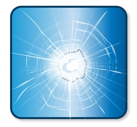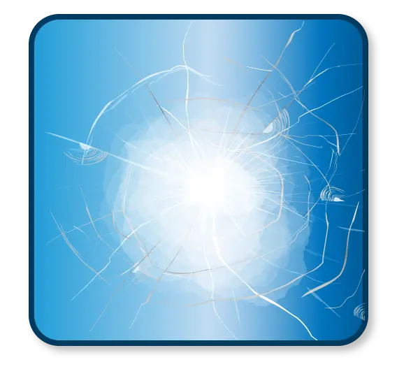 El vidrio se astilla, pero no se desprenden partículas del mismo, manteniéndose en una sola pieza, evitando daños y cortes.